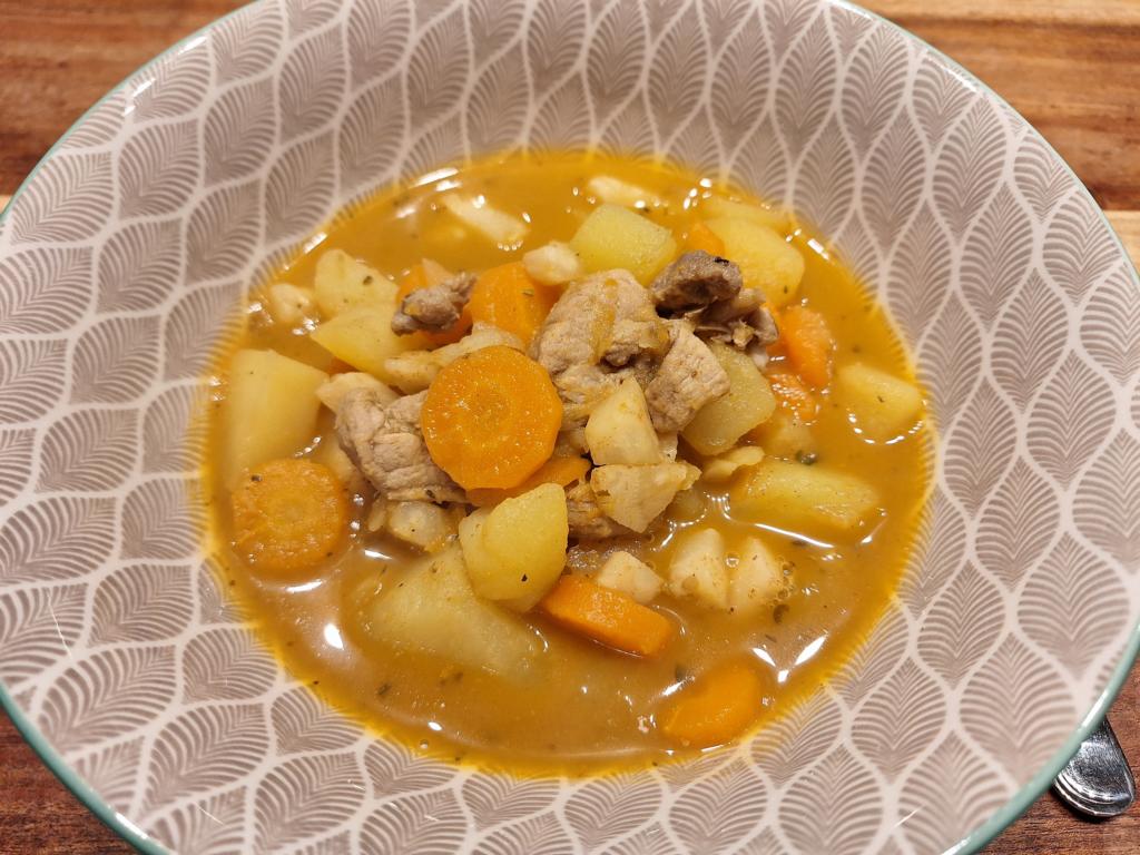Wer von Eintöpfen nicht genug bekommen kann, ist hier gut aufgehoben – hier eine Variante mit Schweinegulasch, Paprikapulver edelsüß und diversen Gemüsesorten, unter anderem Knollensellerie. Gerade die Kombination aus dem Paprikapulver und Sellerie schafft es, eine neue Geschmacksmischung zu bieten, die in sich stimmig ist, aber dazu auffordert, beim ersten Löffel die Bestandteile herauszudeuten. Daher etwas für Eintopfliebhaber, die es rustikal mögen, sich aber etwas abseits vom „MainStream“ bewegen.