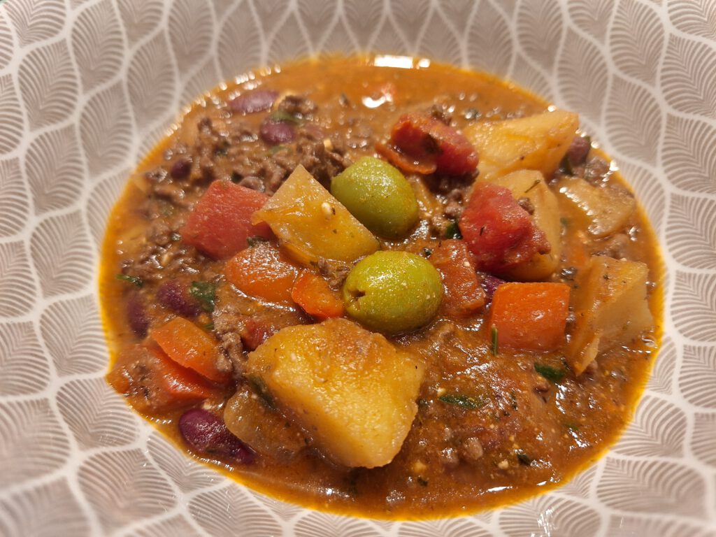 „Griechischer Bauerneintopf“ ist ein ungefährer Begriff, da dieser sich zeitlich nicht greifen lässt, sondern auf die in Griechenland gebräuchlichen Zutaten beruht. Unser Rezept greift genau darauf zu und verwendet neben Hackfleisch und Paprika auch Oliven, Feta, Tomaten und Oregano. Das Rezept ist nicht kompliziert, beihaltet aber mehrere Zutaten und rangiert in unserer Skala daher unter „Vorbereitungs- und Zubereitungszeit“ etwas höher. Davon aber bitte nicht abschrecken lassen – es überfordert niemanden und entschädigt durch eine tolle Variante der OnePot-Gerichte.